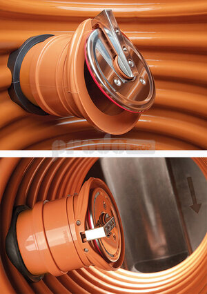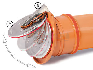 Spätný ventil je vybavený chrómniklovým krytom A na ochranu klapky a tesnenia, ako aj chrómniklovým krytom páky B. Chránia proti hlodavcom, poveternostným vplyvom a vplyvom prostredia (napr. riečny prúd).