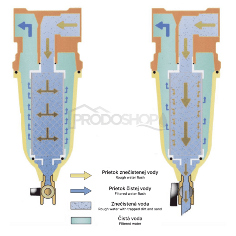 Nahromadené nečistoty sú odstránené cezvypúšťací ventil.