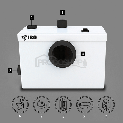 Čerpacie zariadenie SANIBO 4 sa používa v miestnostiach, ktoré neumožňujú odvádzanie odpadových vôd z WC, sprchy, práčky alebo umývadla prirodzeným samospádom.