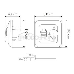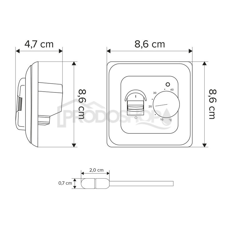 Termostat s manuálnym nastavením a predĺženým podlahovým snímačom. Tento termostat bol vyvinutý pre podlahové elektrické kúrenia a systémy temperovania podláh. Jeho jednoduché ovládanie a možnosti ho predurčujú pre jednoduché aplikácie v miestnostiach kde obsluhu vykonávajú nezaškolení ľudia.(penzióny, hotelové izby a pod.)