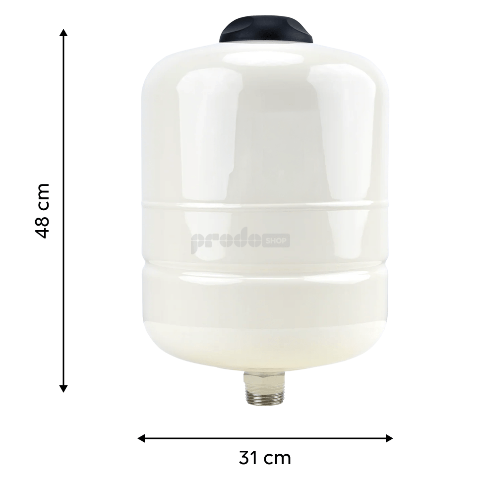 Tlaková nádoba, PS (pracovný) 10bar, rozmer pripojenia 1", používa sa zásobovanie vodou, ako súčasť domácich vodární udržuje konštantný tlak v systéme, znižuje počet zapnutí čerpadla a predlžuje jeho životnosť.
