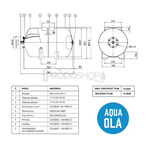 • Tlakovú nádobu 80L AQUA OLA ležatá